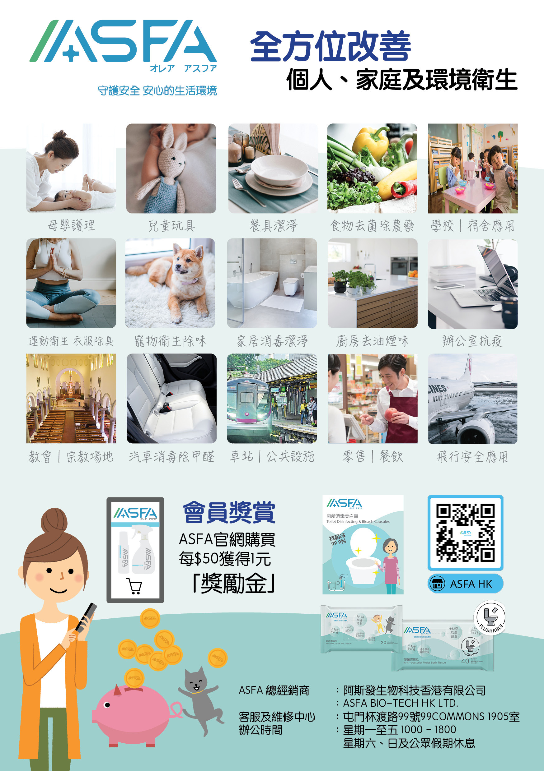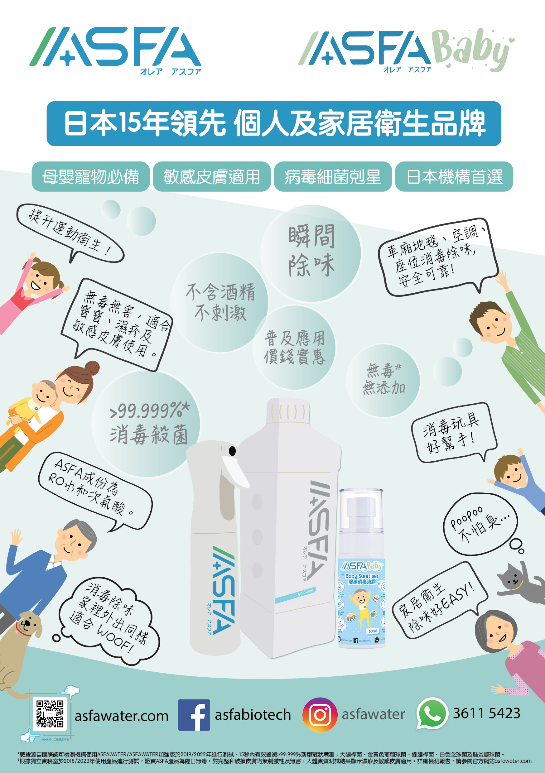 此外,在2011年日本福島大地震及海嘯發生後,日本政府指定ASFA分子消毒噴霧為唯一的安全防疫殺菌產品。